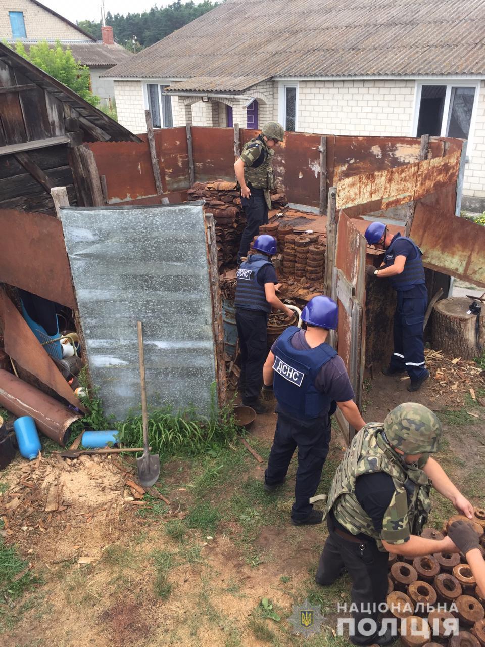 По результатам осмотра хозяйства 59-летнего жителя поселка Смыга Дубенского района Ровенской области, где погибли дети, полицейские изъяли 1149 единиц взрывчатых предметов.
