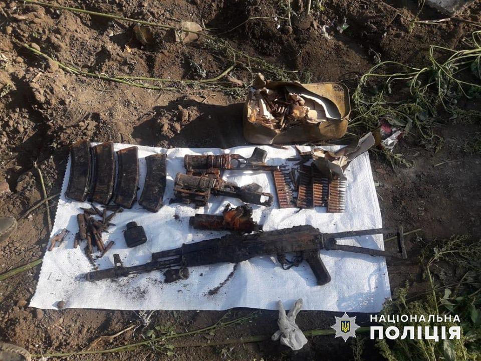 Неподалеку заброшенного здания бывшей школы в с. Царевка Новоайдарского района, в земле, сотрудники местного отдела полиции, взрывотехники ГУНП совместно с сотрудниками СБУ обнаружили и изъяли тайник с оружием и боеприпасами.