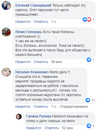 Пользователи Фейсбука поддержали действия продавца, ведь всю недостачу, которая возникает по вине воров, списывают с сотрудников магазина. Из-за этого, по словам киевлян, продавцы в "Червоном маркете" долго не задерживаются.