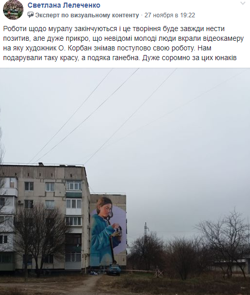 Известный стрит-художник Александр Корбан во время создания мурала в Лисичанске лишился видеокамеры.