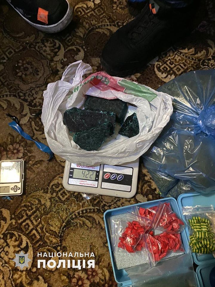 Во время проведения санкционированных обысков по месту жительства задержанных обнаружено и изъято большое количество наркотических средств и психотропных веществ, таких как кокаин, каннабис, метадон, PVP, амфетамин, метамфетамин, МДМА, галлюциногенные грибы и ЛСД в виде марок. Общая стоимость изъятого «товара» по ценам «черного рынка» составляет более 1 млн. грн.