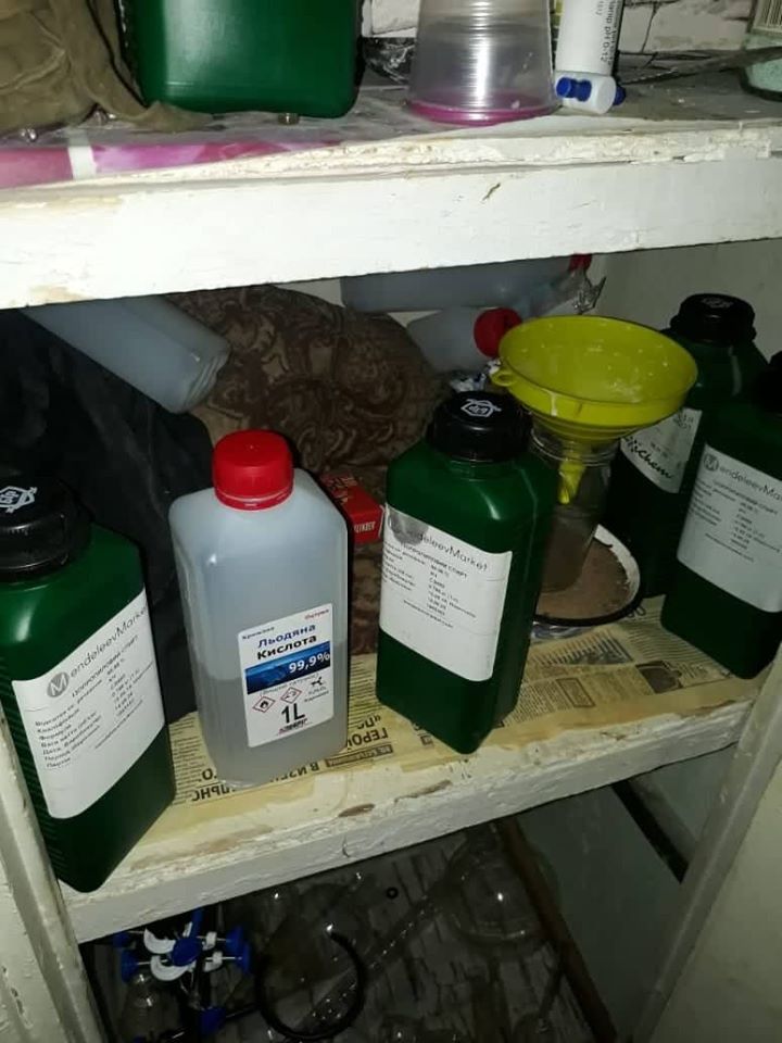 В ходе обыска полицейские обнаружили и изъяли опасные вещества, а также нарколабораторию, где предприимчивый рубежанин где изготавливал психотропные и наркотические вещества.