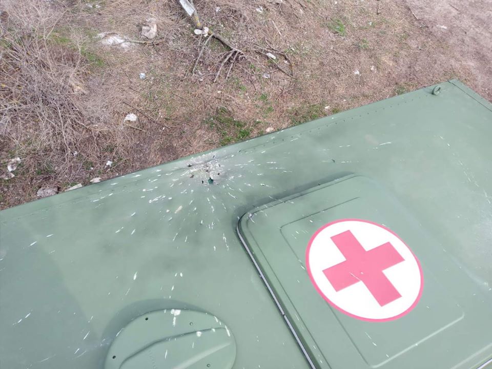 Противник предпринял коварный обстрел с помощью беспилотных летательных аппаратов, с которых сбросил два заряда ВОГ на крышу санитарного автомобиля, на котором была четко видна маркировка эмблемы Красного креста. К счастью, никто из украинских защитников не пострадал.