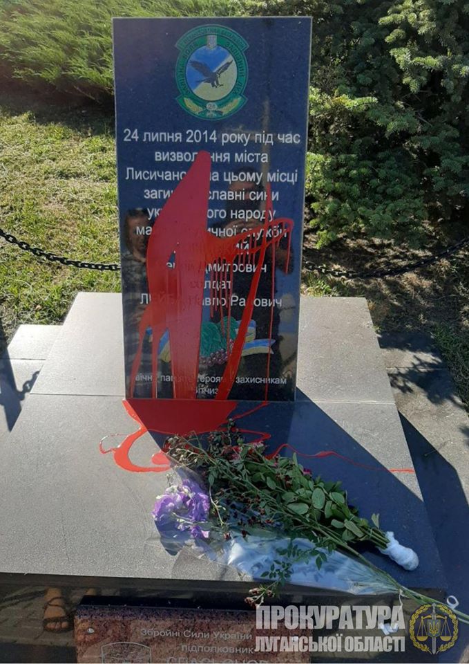 Следствием установлено, что в ночь с 23 на 24 июля 2020 года неизвестные облили краской красного цвета памятный мемориал погибшим при освобождении города Лисичанска в июле 2014 года военнослужащим Вооруженных Сил Украины.