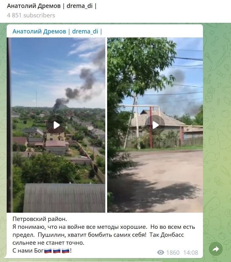 Ранее центральные районы Донецка были обстреляны из РСЗО вечером 4 июня. Оккупанты, само собой, обвинили в обстреле Украину, хотя множество местных жителей утверждают, что обстрел велся со стороны оккупированной Макеевки.