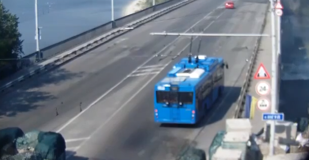 Как можно увидеть, на мосту в этот момент было много гражданских автомобилей и троллейбус.