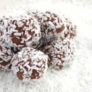 После охлаждения до сформировать шарики, которые, панировать в кокосовой стружке или орехах и тертом шоколаде.