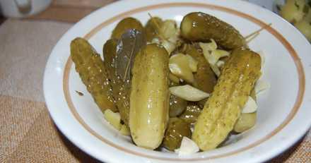 В каждую банку с огурцами сначала залейте 3 ст. ложки 9% уксуса, банку поставьте на полотенце и сразу же осторожно залейте горячий рассол, накройте крышками и стерилизуйте (как стерилизовать банки с заготовками, смотрите здесь ) до изменения огурцами цвета - около 15 минут. Затем вынимайте банки из кипятка, закатывайте, укутайте и пусть остывают в перевернутом виде до следующего дня.