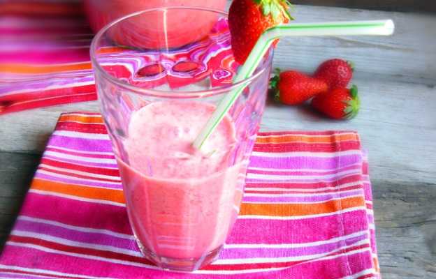 Замочите миндаль в воде в течение приблизительно 12 часов. Затем слить воду и измельчить в блендере. Добавьте воду и перемешайте. Процедите полученное миндальное молоко через марлю. Сделайте пюре из клубники, добавьте сок 1 лимона и смешать с миндальным молоком. При желании подсластить и подавать охлажденным или со льдом.