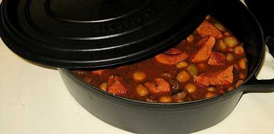 Нагреть духовку до 210 градусов. На сковороде смешать примерно 20 грамм (столовую ложку сливочного масла) и 2 столовые ложки растительного масла. В горячем масле обжарить каждый кусочек мяса с обеих сторон до золотистого цвета. Добавить нарезанную морковь, обе луковицы (порезанные), чеснок и специи по вкусу. Готовить еще 10 минут. Добавить порезанные помидоры и томатную пасту и готовить еще 5 минут помешивая. Затем добавляем белое вино, выдерживаем на сковороде еще 5 минут. Теперь сюда наливаем немного воды, солим, перчим (лучше свежемолотым перцем) и отправляем в духовку на час. В течение этого времени при необходимости можно добавлять понемногу воды.