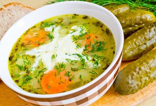 Добавить овощи в бульон и варить 20 минут. Затем добавить маринованные огурцы, тертые на овощной терке, варить 5 минут. Наконец, добавьте сливки, разбросанные небольшим количеством супа и свежего молотого перца.