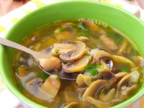 Приготовить грибной суп несложно. Подается он со свежей зеленью и сухарями.