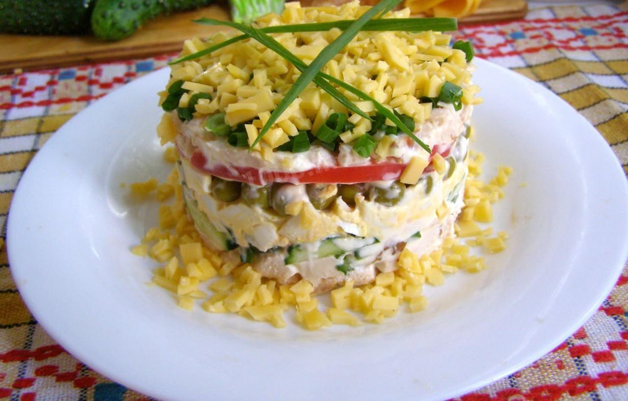 В преддверии Новогодних и Рождественских праздников, каждая хозяйка ищет что - то новенькое и необычное для праздничного стола. Рецепты различных салатов и закусок, которыми сможет удивить родных и близких. Одним из таких рецептов может стать салат из копченой курицы и сыром. Слоеный салат очень вкусен и сытен и отлично смотрится при подаче.