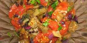 Жареные баклажаны,тушеные овощи и порезанную зелень заправить заправкой из 1 ст. ложки лимонного сока, 2 ст. ложек растительного масла измельченного свежего чеснока и 0,5 ч. ложки соли. Все аккуратно перемешать.