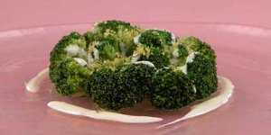 Брокколи разберите на соцветия, отварите в бульоне до готовности, в конце добавьте мелкорубленные лук и чеснок, посолите, поперчите и варите 2 минуты.