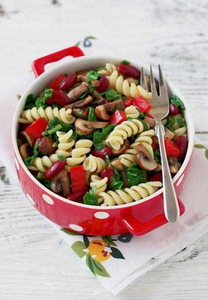 Отварите макароны (пасту) в подсоленной воде. Промойте холодной водой и переложите в салатницу.