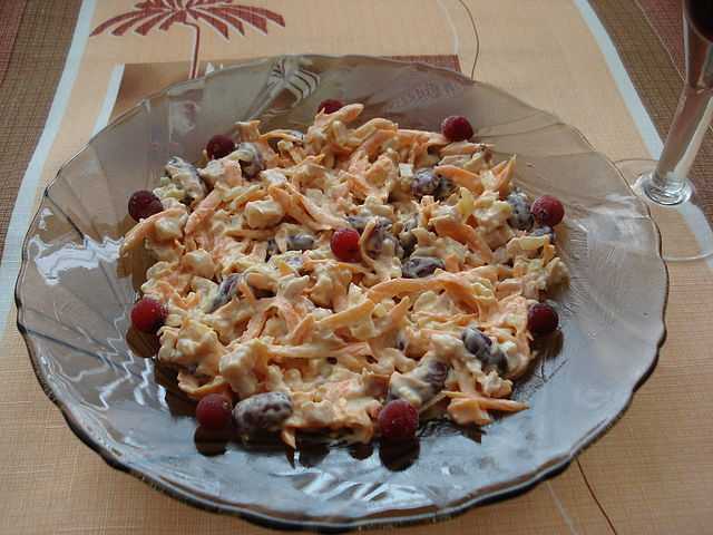 Все ингредиенты соединить, заправить майонезом и перемешать.