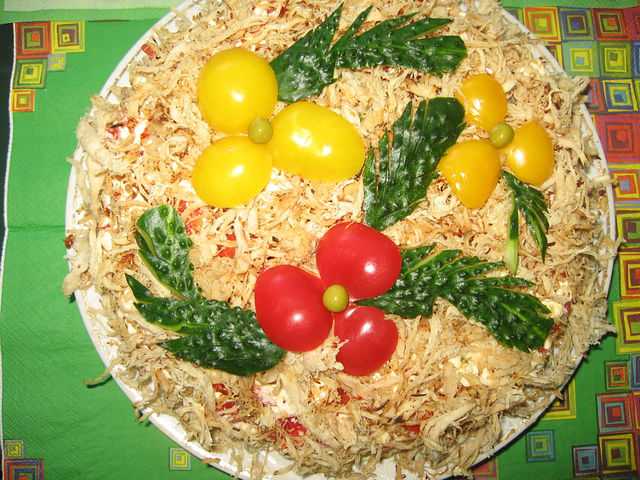 6слой: мелко порезанный болгарский перец – сеточка майонеза;