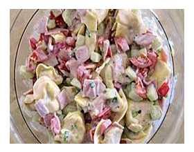 Замесить крутое тесто и посолить его. Отдельно приготовить фарш, посолить и поперчить его. Измельчить репчатый лук. Нарезать тесто кубиками и отварить. Обжарить фарш с луком. Приготовить соус: пропустить через чесночницу чеснок и соединить его со сметаной по вкусу. Выложить тесто и фарш слоями в глубокие тарелки, полить сметанно-чесночным соусом. Украсить чипсами, а сверху посыпали тертым яйцом и копченым колбасным сыром.