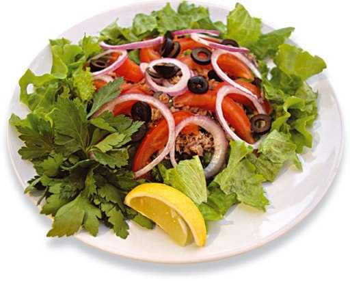 С рыбных консервов слить жидкость, размять рыбу вилкой. Огурцы нарезать кружочками. Болгарский перец нарезать соломкой. Лук мелко нарезать, маслины разрезать пополам. Приготовить соус для салата: соединить оливковое масло, сок лимона, соль и перец, все тщательно перемешать.