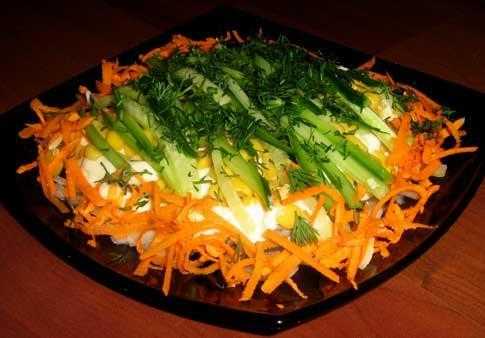 Следующим слоем выложите консервированную кукурузу.