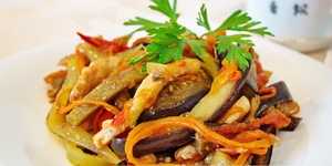 Осьминога порезать крупными кусками, добавить в салат и перемешать с острым соусом.