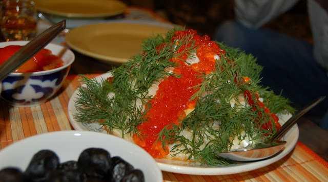 Нежный вкус салата очень хорошо сочетается с солоноватой икрой.