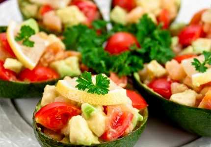 Авокадо разделить на две части и чайной ложкой вынуть мякоть. Сбрызнуть половинки авокадо лимонным соком и отложить. Нарезать небольшими кусочками мякоть авокадо, укроп, филе копченого лосося, перец, смешать и заправить майонезом. Наполнить половинки авокадо салатом и поставить в холодильник на 3-4 часа. Подавать на листьях салата, украсив .веточками укропа.