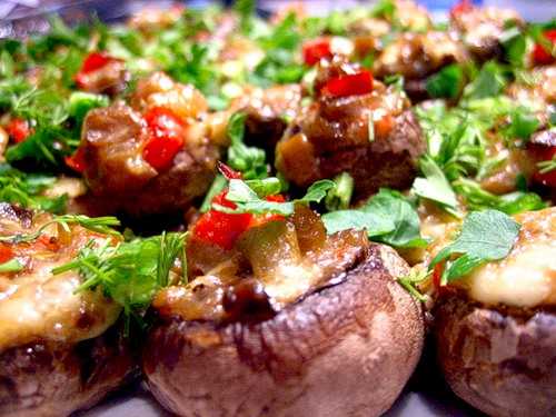 Шампиньоны фаршированные. Для рецепта необходимо: шампиньоны - 24 шляпки, оливковое масло - 4 ст.л., вино сухое белое - 3 ст.л., масло сливочное - 2 ст.л., лук репчатый – луковица, чеснок - 1 зубчик, томат-пюре - 2 ч.л., соль - 1 ч.л., молотый черный перец - 1/3 ч.л., панировочные сухари - 2 ст.л., зелень петрушки - 3 веточки… О, это у меня одно перечисление ингредиентов займет полстраницы, плюс рецепт приготовления… Лучше для «шпионов» по шампиньонам я перечислю блюда, которые мы уже готовим теперь с женой (благодаря справочной литературе, а всех желающих последовать нашему примеру отправим в тот же «кукинг.ю эй» в интернете, чтобы каждый в комнатном уюте выбрал себе блюдо по душе. Или «по желудку», кому как.