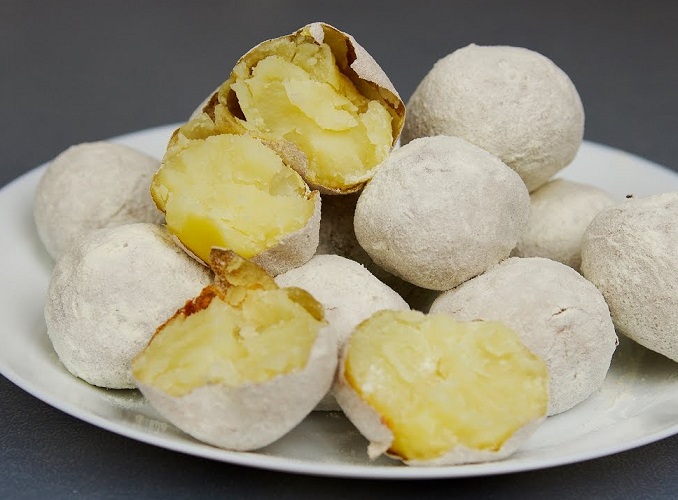 Но еще вкуснее будет такая картошечка запеченная в духовке. Муку с солью в таких же пропорциях высыпаем в полиэтиленовый пакет, в него же отправляем картофель и все перемешиваем. Так же выкладываем картофель на противень и выпекаем его в разогретой на 180 градусов духовке примерно 30-35 минут.