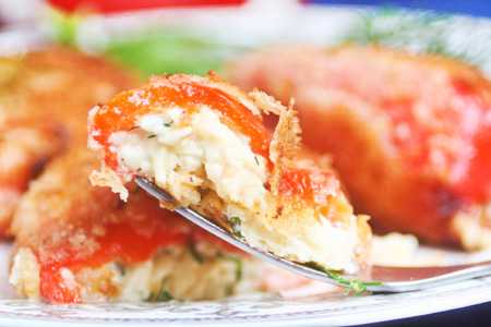 Затем обваливаем их в муке, взбитом яйце и панировочных сухарях. В сковороде разогреваем большое количество растительного масла и обжариваем перцы с двух сторон до румяной корочки. Обжаренные перцы складываем на бумажное полотенце для удаления излишков масла. Перцы можно подавать теплыми как второе блюдо или холодными, как закуску.