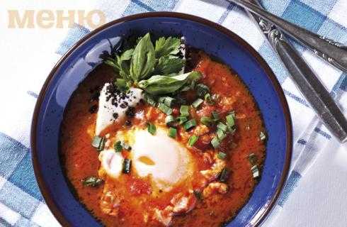 2. Как только соус проварится 5-6 минут, осторожно разбить яйца и закрыть емкость крышкой. Оставьте на очень слабом огне в течение 4-5 минут пока яйца не запекутся.