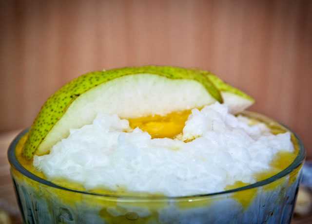 В рисовую кашу можно добавить 30 г груши, натертой на мелкой терке.