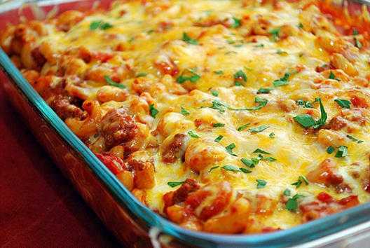 Незадолго до того, как блюдо будет готово, посыпать тертым сыром. Когда вы получите золотисто-коричневый цвет, вы можете вынуть из духовки пасту.