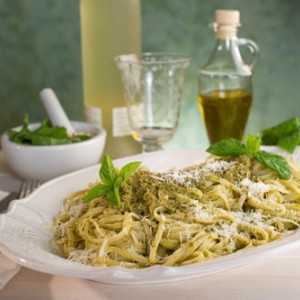 Базилик мелко порежьте дробления осторожно смешайте с оливковым маслом, лимонным соком, чесноком и грецкими орехами.