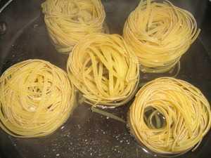Первый вариант. В неглубокую посуду (можно в сковородку) поместите «гнезда», налейте немного воды, добавьте пару ложек растительного масла, посолите, накройте крышкой и на небольшом огне доведите их до готовности (во время варки гнезда можно перевернуть, чтобы они сварились равномерно).