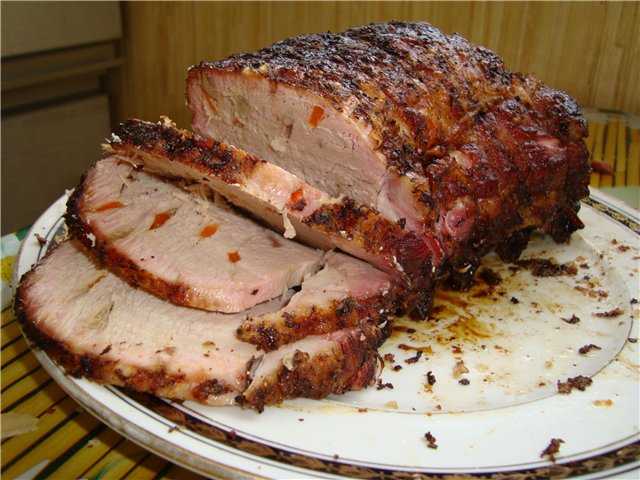 Поставив кастрюлю на огонь, варим 20 минут, а затем оставляем до полного остывания мяса. После чего свинину нужно вынуть, нашпиговать чесноком и, обсыпав красным перцем, положить завернутой в фольгу на 2 часа в холодильник.