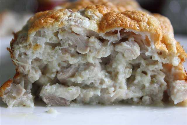 Добавить в курятину настоявшиеся хлопья, посолить, поперчить.