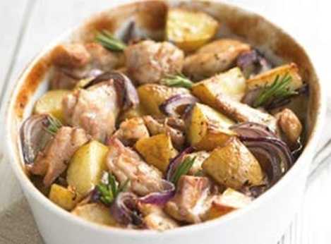 Когда кусочки курицы промаринуются, разложить их на противне. Запекать при 180С до готовности (около 1 часа.)