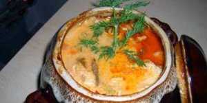 Теперь все заливаем на 2/3 томатно-сливочным соусом, накрываем горшочки крышками и ставим в духовку на 230 градусов.