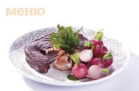 4. Рыба подается с соусом, редисом и листьями.