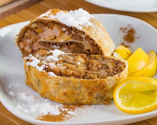 Наверное многие, но не все, знакомы с таким блюдом как штрудель. Это мучное блюдо является австрийским десертом. Штрудель – это рулет, который готовится из тонкого бездрожжевого вытяжного теста, в основном с яблочной начинкой, хотя есть множество и других возможных начинок. На сей день это блюдо является достаточно популярным в мире. Также штрудели могут быть не только сладкими, но и с мясом, рыбой, грибами, а также с картофелем. Имея такую популярность штрудель имеет множество разных рецептов. Из напитков к штруделю прекрасно подойдет чай или латте.