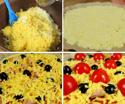 Капусту промыть и обсушить, нарезать соцветия на небольшие кусочки. Перемолоть удобным для вас образом, комбайном или на терке. Сыр натираем обязательно на мелкой терке. В чистой миске смешиваем измельченную капусту с сыром и добавляем яйца, соль и сушеный орегано, тщательно перемешиваем и тесто готово. Застилаем противень бумагой для выпечки и выкладываем наше тесто, равномерно распределяем в форме круга. Духовку разогреваем до 200° и отправляем противень с будущей пиццей на 10 минут.