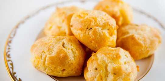 В кастрюлю среднего размера добавьте воду, масло и соль, и доведите это все до кипения. Затем следует уменьшить температуру, постепенно добавляя в кастрюлю муку. Главным условием правильного приготовления теста является быстрое и непрерывное помешивания. Через некоторое время тесто превратится в густую массу, которая будет отделяться от стенок кастрюли. Лучше использовать деревянную ложку, так тесто будет слишком густым. Продолжайте помешивать в течение пары минут. Снимите кастрюлю с огня и оставьте на 5-7 минут в прохладном месте. Тесто должно немного охладиться, чтобы Вы смогли добавить яйца. Яйца следует добавлять постепенно, хорошо вымешивая при этом тесто. Тесто должно приобрести консистенцию размягченного сливочного масла. Добавьте в тесто тертый сыр чеддер, чабрец и щепотку свежепомолотого перца. Разогрейте духовку до 350 °. Застелите противень пергаментной бумагой. С помощью столовой ложки выкладывайте небольшие шарики на противень. Запекайте в духовке в течение 10 минут, затем следует уменьшить температуру до 200 ° и выпекать до той поры, пока эклеры не приобретут нежно-коричневого цвета. Приятного аппетита!