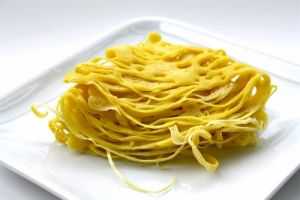 Хорошо разогреть сковороду, смазать подсолнечным маслом, налейте в стакан тесто и делайте на сковороде "кружева".
