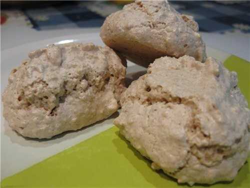 Теперь выкладывайте столовой ложкой порции полученной массы (будущее печенье) на смазанный маслом силиконовый коврик или бумагу для выпечки. Оставьте на 30 минут, чтобы печенье покрылось легкой корочкой - "обветрилось". А теперь его можно выпекать в духовке в течении 30-35 минут при температуре 160 градусов. Готовность можно проверить разломав одно печенье: если оно внутри не мокрое, значит готово.