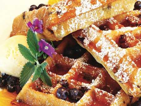 Налейте тесто на вафельницу и жарить до золотисто-коричневого цвета, около 8 минут. Чтобы сохранить вафли теплыми и свежими, положите их на несколько минут перед подачей в нагретую до 250-градусов духовку.
