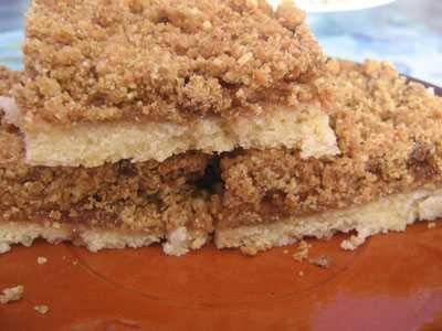 Маргарин порубить и растереть с мукой и сахаром, отобрать 1-2 ст. этой смеси. В эту рубленную массу добавить яйца, кефир, соду и перемешать. Добавить промытый изюм, выложить массу на противень. Сверху посыпать посыпкой и 1 пакетиком ванильного сахара. Выпекать при температуре 220 г. до подрумянивания.
