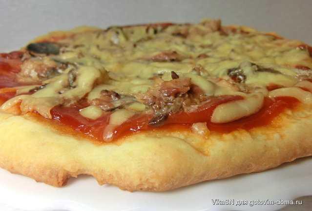Тесто раскатать тонко, 3 мм, 2 лепешки, помазать томатной массой, разложить тунец, предварительно слить жидкость, полить оставшимся маслом и разложить толстым слоем сыр. Духовку предварительно разогреть, выпекать при 20-25 мин. Для теста как я уже сверху написала все сделать точно, для верха не обязательно.