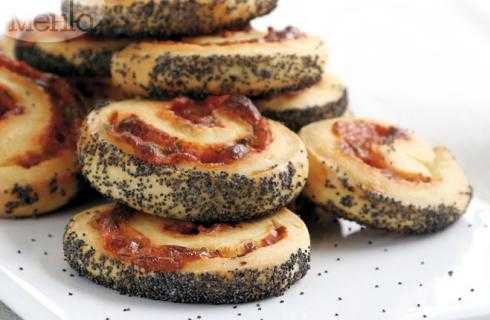 3. Рулон разрезается на 1 см, намазать яичным желтком и посыпать кунжутом или маком и поставить на лист для выпечки в разогретую духовку до 200 ° С на 20 минут или до золотистого цвета.